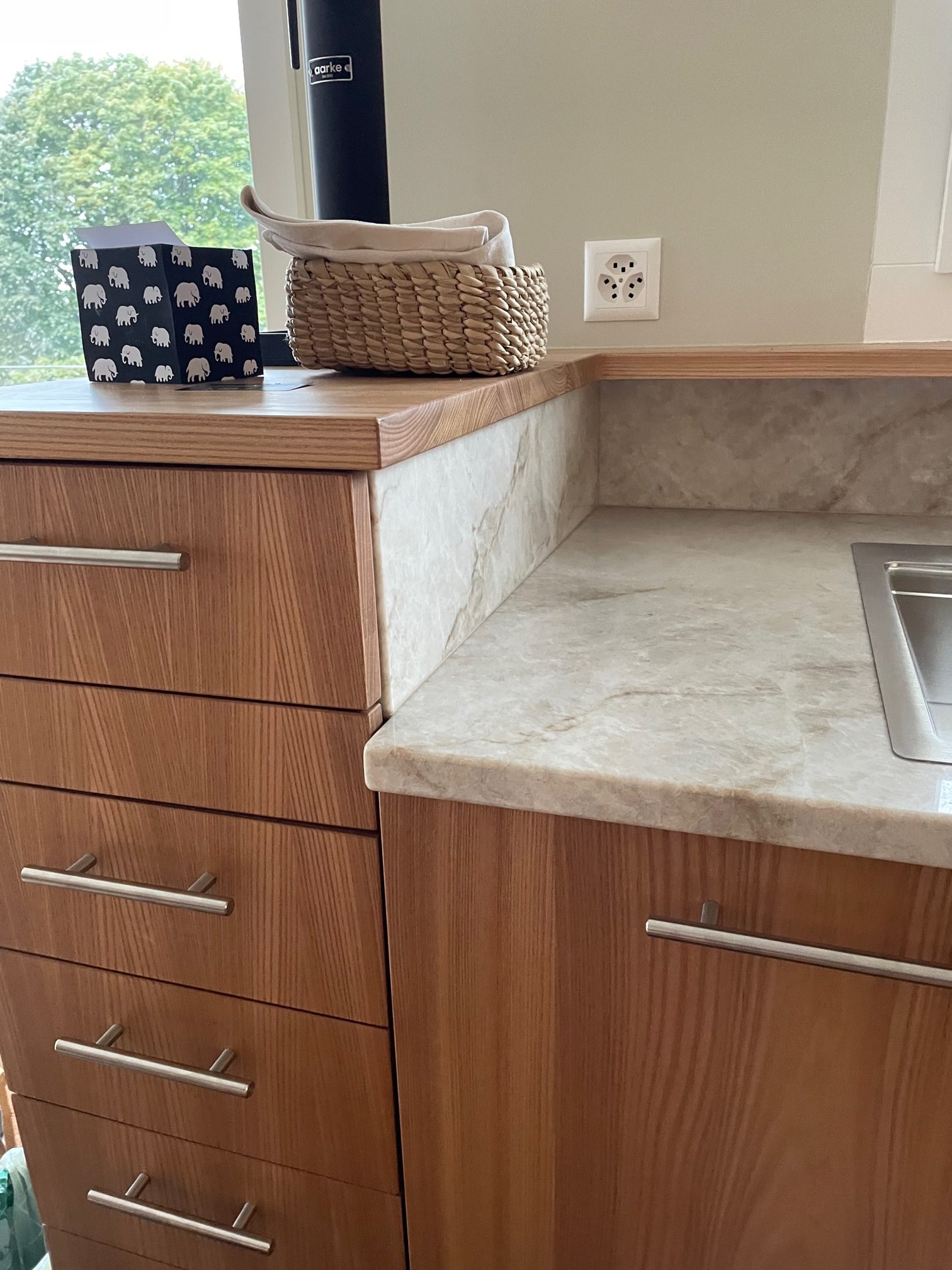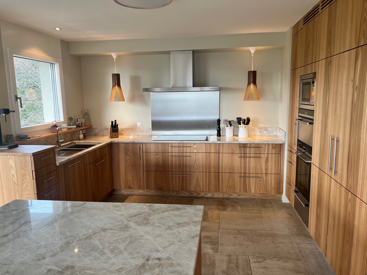 cuisine. Ou un plaquage en bois en massif huilé, ou des panneaux de particules de dernière génération du type Phenix, au