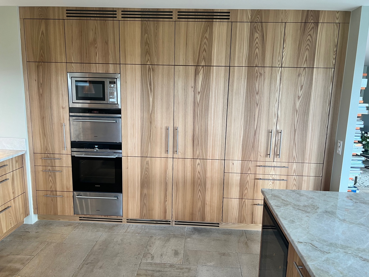 Une fois le projet approuvé, le temps de fabrication varient entre 6 et 8 semaines en fonction du volume des commandes. En ce qui concerne la pose en elle-même, dans la plus part des cas, la pose du mobilier nécessite 5 à 7 jours. Pour la prise des mesures du plan de travail en pierre naturelle et la pose, il faut compter environ 10 jours. Globalement il faut compter une quinzaine de jours à partir de la livraison du mobilier. Mais ceci dépend de plusieurs facteurs, donc la complexité du projet.