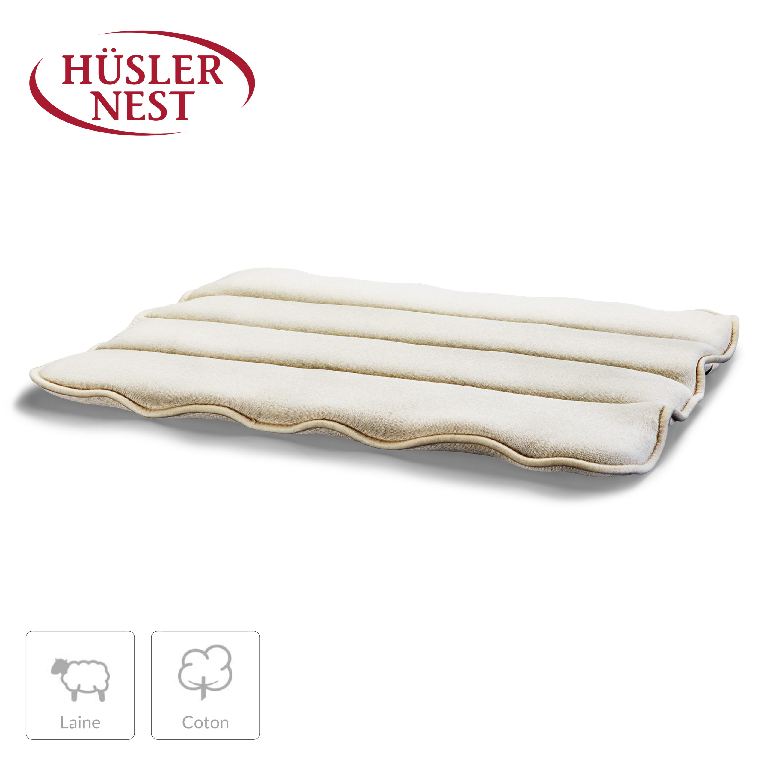Les oreillers Hüsler Nest SIV sont de type « modulaire ». Vous pouvez combiner à votre guise les matières de leurs composantes, en changer quand vous voulez et aussi nous en recommander. Le garnissage d’oreiller en laine de mouton vous offre tous les avantages d’une matière naturelle. La laine de mouton régule la température et a des effets apaisants. Pour obtenir la hauteur d’oreiller souhaitée, il suffit de superposer plusieurs couches de cette laine à l’intérieur de la housse d’oreiller.