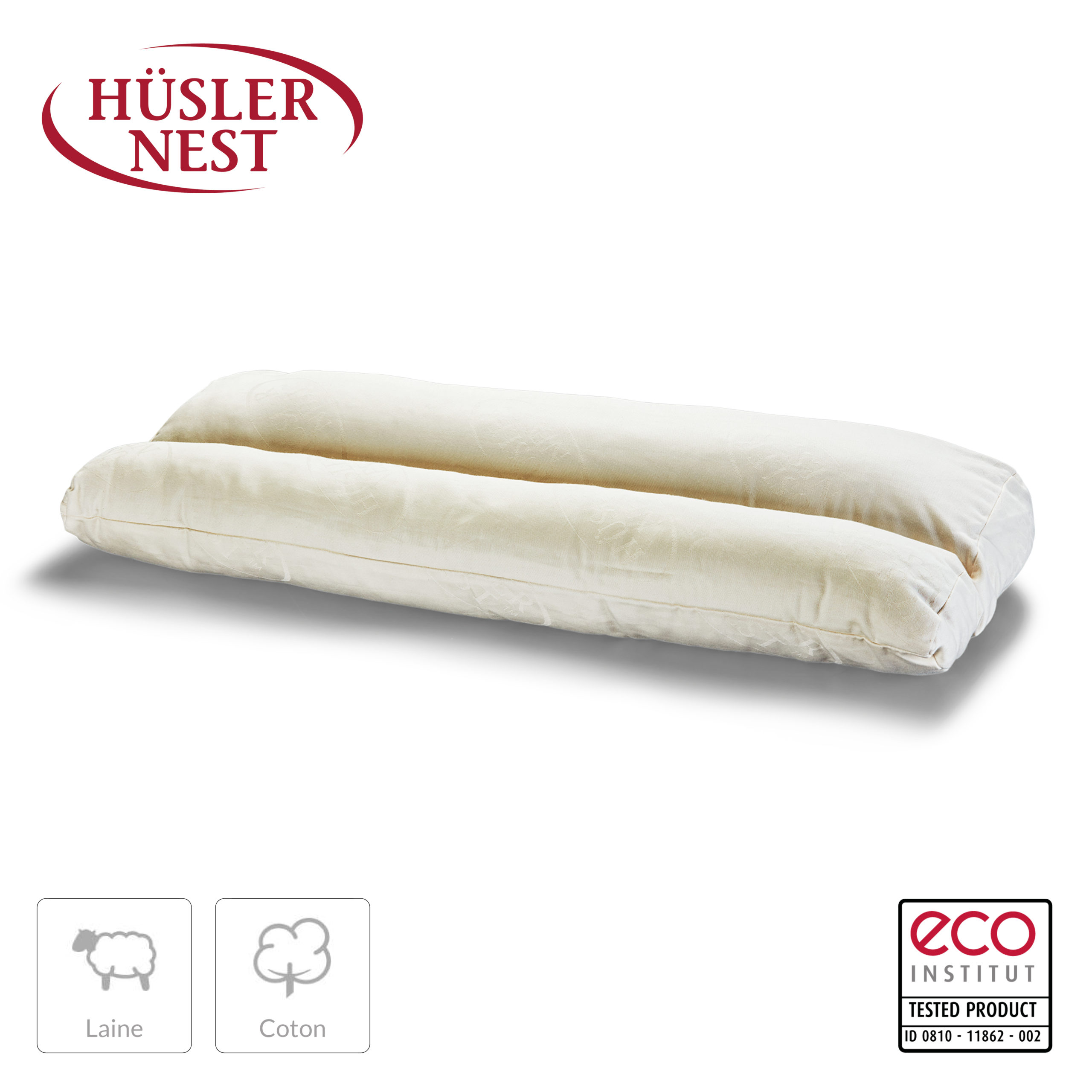 Cet oreiller cervical s’adaptera parfaitement, grâce à ses deux compartiments, à la forme de votre tête. Le compartiment le plus petit est le plus dur. Le plus grand est plus moelleux. La laine ayant la propriété de réguler le taux d’humidité, la tête ne transpire pas. Si vous trouvez l’oreiller trop dur, il vous suffira de retirer des perles de laine.