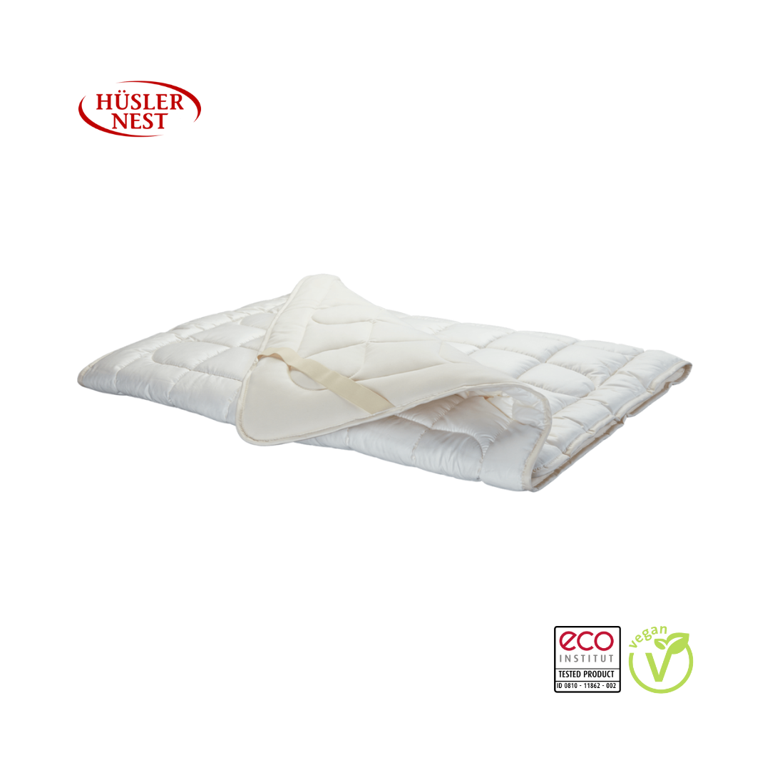 Le sur-matelas est la composante thermorégulatrice du système de couchage Hüsler Nest. Le sur-matelas Hüsler Nest étant constitué uniquement de matières végétales (coton-lin/satin), il convient tout particulièrement pour les personnes ayant un mode de vie végane.